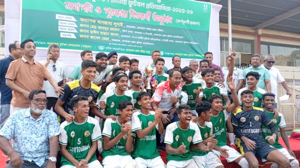 বান্দরবানে বাংলাদেশ অনুর্ধব -১৭ জাতীয় ফুটবল প্রতিযোগিতা সমাপনী অনুষ্ঠান অনুষ্ঠিত বান্দরবানে কোরআন তেলওয়াত ও গজল প্রতিযোগিতা ইফতার মাহফিল অনুষ্ঠিত বান্দরবানে স্পোক কেন ইংলিশ কেয়ার প্রতিষ্ঠাতা উদ্যোগে পবিত্র রমজান উপলক্ষে গরীব, নিরীহ অসহায় পথচারীদের মাঝে ইফতার বিতরণ বিলাইছড়ির দূর্গম পাহাড়ে সেনাবাহিনীর বিশুদ্ধ পানির প্রকল্প বাস্তবায়ন রাঙ্গামাটিতে সোলার চালিত ‘মিনি কোল্ড স্টোরেজ ‘:সবজি সংরক্ষণে কৃষকদের নতুন আশার নিয়ে প্রশিক্ষণ কর্মশালা বান্দরবান সদরে ৮৮ জন আনসার ও ভিডিপি সদস্যদের মাঝে ঈদ সামগ্রী বিতরণ বান্দরবান লামা’র মাননীয় প্রধানমন্ত্রী কর্তৃক ঘোষিত “ফ্যামিলি কার্ড” বিতরণ কার্যক্রমের শুভ উদ্বোধন করেন পার্বত্য মন্ত্রী দীপেন দেওয়ান বান্দরবানে রোয়াংছড়িতে মারমা সম্প্রদায়ের প্রাচীন ধর্মীয় ঐতিহ্য ও বৌদ্ধ রীতি অনুসরণ শেষ হলো পরম পূজনীয় ভদন্ত কৌসলা থের এর শেষ বিদায় অসহায় ও দুস্থপরিবার মাঝে আটশত ৩১পরিবার মাঝে চাল বিতরণ করেন সংসদ সদস্য রাজ পুত্র সাচিং প্রু জেরি এমপি, বান্দরবান স্টেডিয়াম মাঠে ফুটবল খেলার প্রতিযোগিতায় উদ্ধোধন করেন জেলা প্রশাসক মিস শামীম আরা রিনি